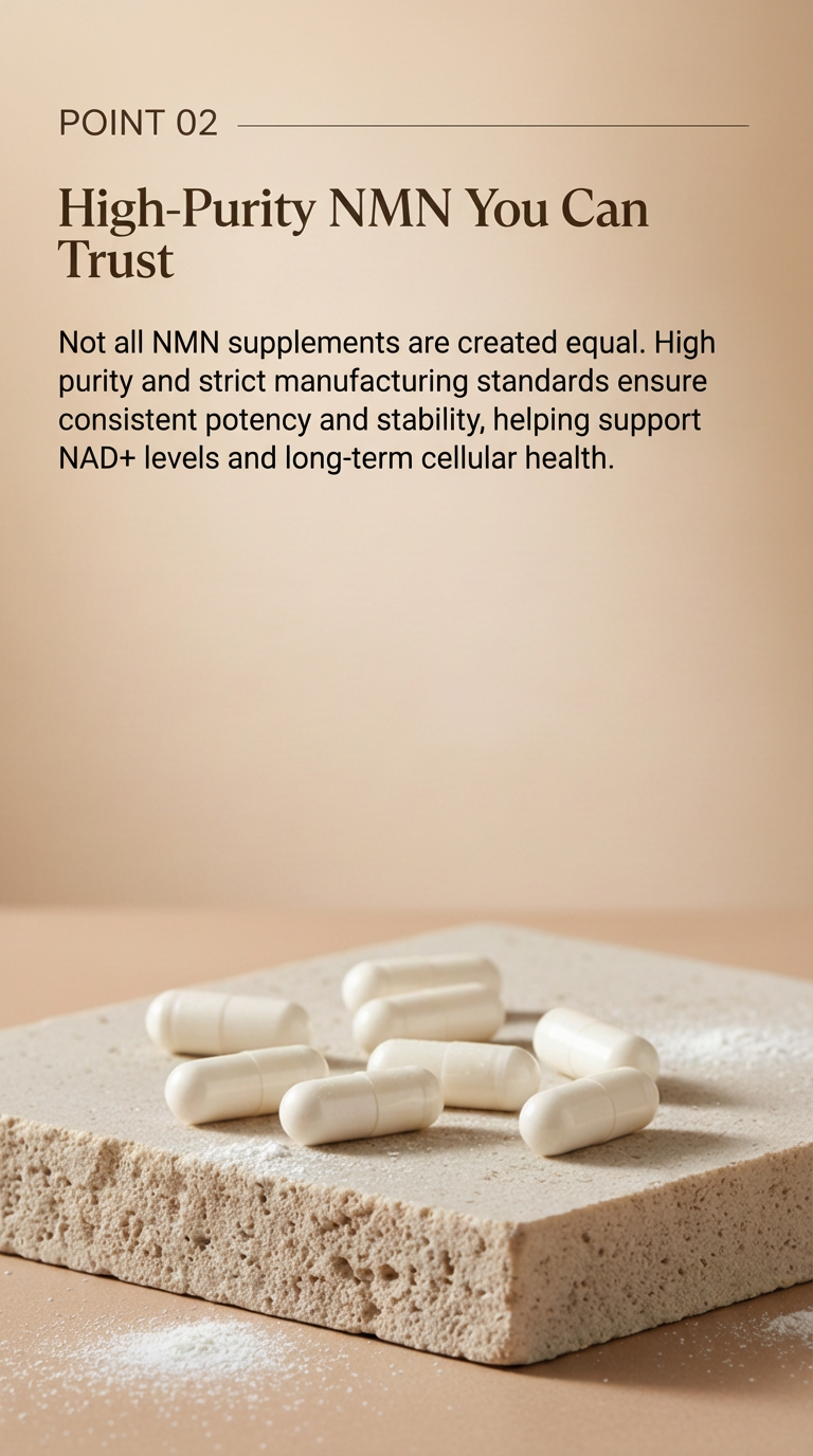 *Based on emerging scientific research on NMN, NAD+ metabolism, and associated longevity pathways. Individual results may vary.
